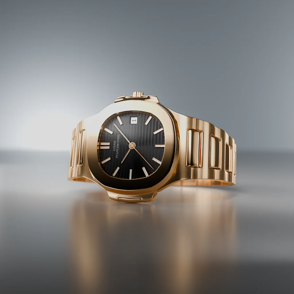 Die hochglänzenden Details von Gehäuse, Armband und geriffelter Lünette erzeugen eine beeindruckende Brillanz, die garantiert Komplimente anzieht.